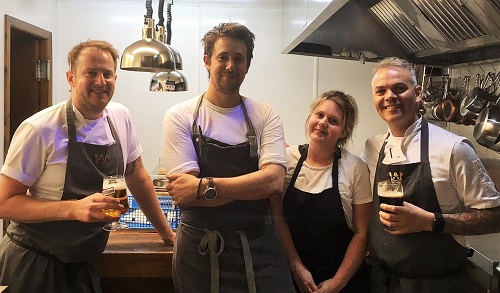 (LtoR Mike Jennings (Head Chef at WOOD), Tom Parker Head Chef The White Swan, Emily Quinn Chef at White Swan, Simon Wood Executive Chef, Owner WOOD.)
