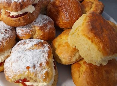 The coffee shop at Penny Farm serves a range of teas, coffee, light lunches and it's famous for homemade cakes and scones and is a five star food hygiene rated.