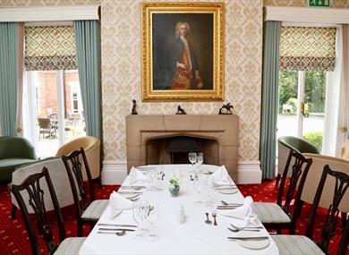 Farington’s Garden Restaurant, open to non-residents, has an elegant atmosphere with original plaster mouldings on the ceiling and an ornate fireplace which reflects the history of this fine house.