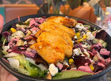 The food, dessert and vegan menus offer a wonderful choice of creative and dramatic salads, nachos, bagels, savoury crepes, loaded fries along with pizzas and ciabatta’s all made fresh to order.