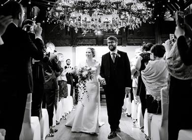 With everything under one roof, holding your ceremony at Samlesbury Hall means there is no need for any travel between venues for you and your guests. The Whittaker Room is licensed for up to 90, with original windows from nearby Whalley Abbey and beautifully carved panelling. Originally a private chapel for the families who lived in Samlesbury, this gorgeous room has been sympathetically converted and sanctioned to hold civil ceremonies. For bigger parties, the 14th century Great Hall is licensed for up to 120, or for a more intimate wedding ceremony, the Parlour is ideal for up to 25 people.