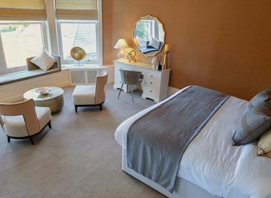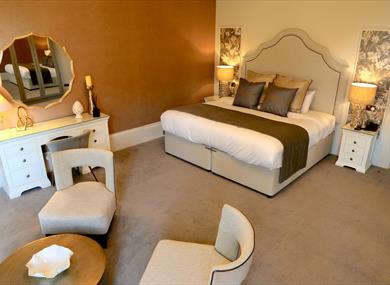 For period splendour, the Classic rooms are sited in the original house on the first floor, including seven of the original Classic bedrooms, plus a junior suite and superior suite, both suites include spacious bedrooms with lounge furniture and window seats and feature bathrooms. The superior suite has a king size bed and stunning views of the gardens. The junior suite would accommodate three extra folding beds for a young family, for a small charge including their breakfast.