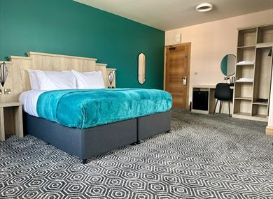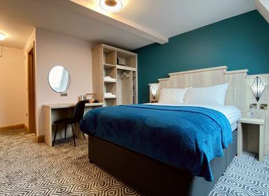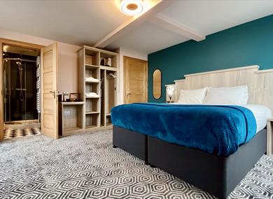 Superior king doubles. The largest rooms, for those wanting a little something extra. Featuring a super-king size bed, additional seating area, 55" flat screen TV, desk and an ensuite shower room.