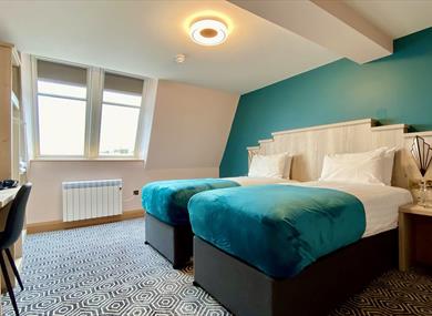 Classic twin. Ideal for friends or family travelling together, or those who just don't like sharing a duvet. The classic twin offers the perfect balance of comfort and functionality. With two single beds, flat screen TV, desk and ensuite shower room.