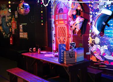 At the heart of The Fun House beats a vibrant, neon-lit rollerskating rink that will have you gliding and grooving to the rhythm of the music. Whether you're a seasoned skater or just starting out, the spacious rink offers an electrifying atmosphere, perfect for all ages and skill levels.