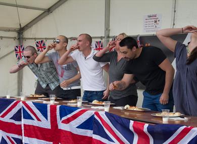 The recipe for the weekend, we'll take some of the best of British producers, a big serving of stunning hot food, real ale and wine bars, add a dash of craft and gift stalls, lots of activities for the kids, top chef demos and some amazing local talent, stir in a cake competition and the popular Men vs Food, with lashings of excellent live music and mix together to make a lovely foodie family day out.
